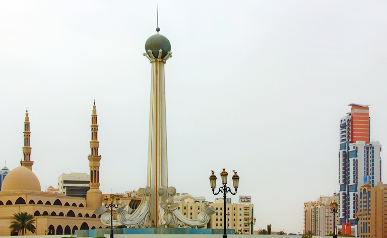 Обелиск, посвященный стремительному развитию Шарджи в сочетании с соблюдением мусульманских традиций, вознесся до высоты пятнадцать метров.