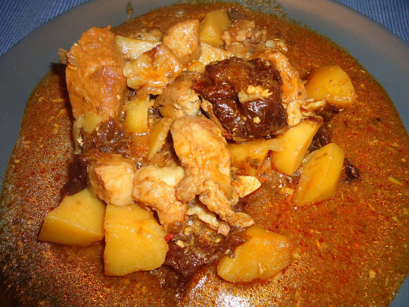 Очень вкусное и сытное блюдо. Для его приготовления закупим 1 килограммом мяса, 3 столовыми ложками томатного пюре, 3 луковицами, 5 зубчиками чеснока, 4 средними картофелинами, 400 граммами чернослива, 1 стаканом бульона, столовой ложкой меда, 2 столовыми ложками молотого имбиря, 2 чайными ложками уксуса, 3 столовыми ложками коньяка, сахар соль и пере добавим по вкусу.