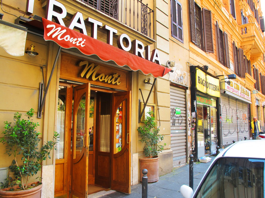 “Trattoria Monti” – один из лучших семейный ресторанов. Обжаренные цуккини, тортини, великолепная говядина, соус горгонзола, домашняя паста и приличный выбор вина.