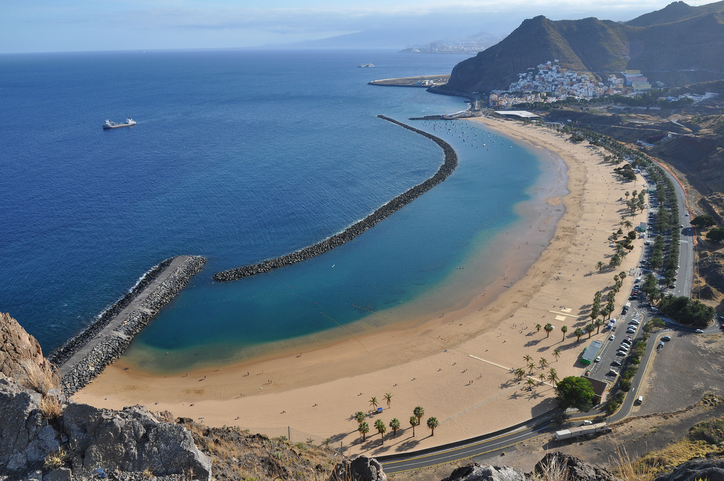 Самый красивый и популярный пляж с белым песком – Teresitas (рядом с Santa Cruz). Длина береговой линии пляжа составляет чуть более 1 километра и на всей его протяженности украшены канарскими пальмами. На пляже Teresitas хорошо развита инфраструктура – здесь созданы все условия для отдыха.