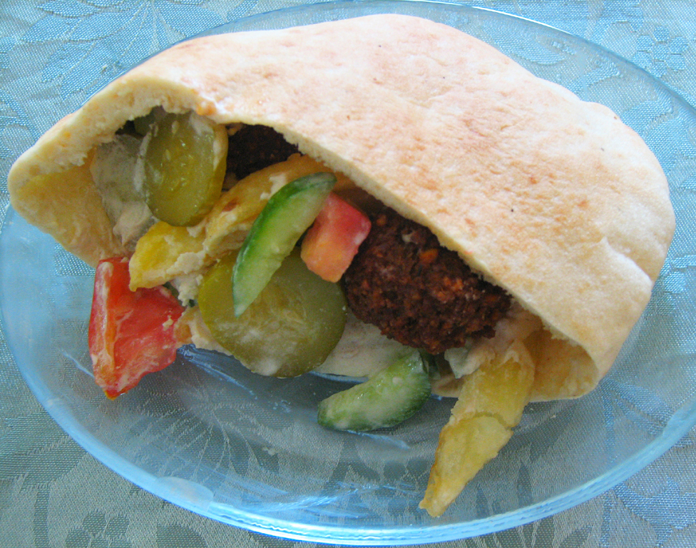 Фалафель невозможно представить без питы, круглой пресной лепешки с полостью внутри. Верхняя часть питы отрезается и в образовавшийся кармашек закладывают все, что угодно – шаурму, шашлык, салаты и, конечно же, фалафель с хумусом.
