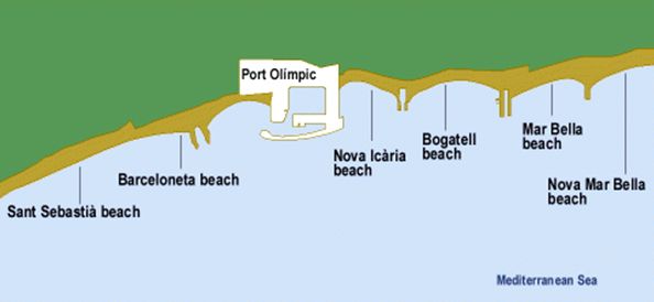 Пляж, точнее их группа, состоящая из одиннадцати пляжей, расположены не в самой Барселоне, а ее пригороде Sitges. Дорога сюда займет всего пол часа, если Вы перемещаетесь по городу на автомобиле. Все эти пляжи вполне подходят для отдыха, однако более всего оборудован пляж St. Sebastian. Особенностью этого комплекса пляжей является то, что Вы можете сами выбирать место для отдыха – либо на одном из центральных с большим количество людей, либо на отдаленном в тишине и практически полном одиночестве.
